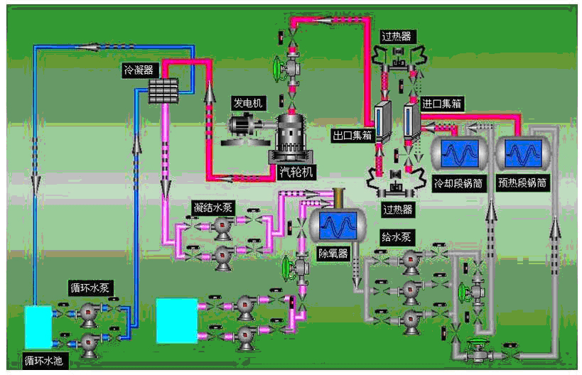 也可根據用戶需要,選用抽凝式汽輪機,在冬季抽取低壓蒸汽供暖,或在夏季通過溴化鋰技術制冷(中央空調)。